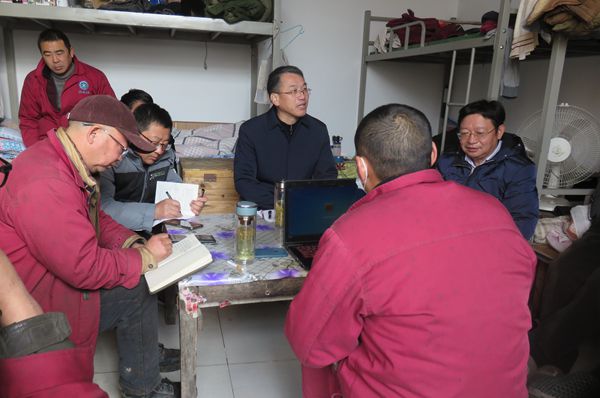 在生产一线,张育文看望慰问了在严寒中坚守岗位的一线职工,详细了解他们的工作和生活情况。同时,走进机台认真查看现场作业环境、机械安全防护措施、安全用电、安全管理台账等。