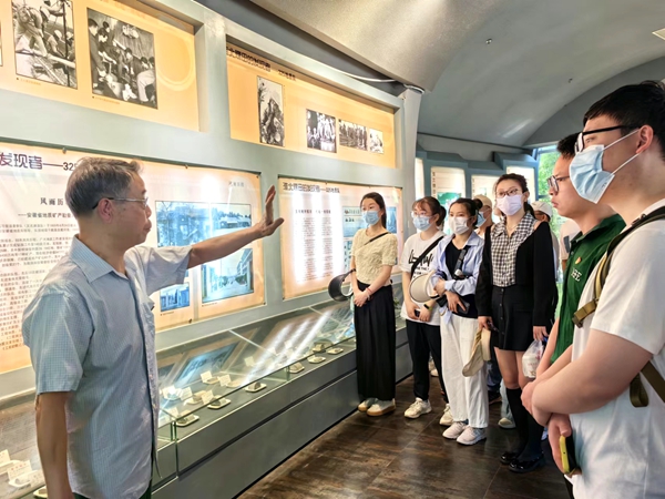 在淮北市矿山博物馆325地质队展区,老党员唐开健从闸河煤田的发现、重要现实意义讲起,详细讲述轰轰烈烈的闸河煤田勘探史;从主业的转变、队址的搬迁,简要概述了325地质队找矿报国、服务社会的发展史。结合党的二十大学习,他勉励大家牢记初心使命,践行责任担当,在新一轮找矿突破战略行动中再立新功。