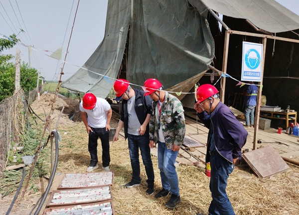在野外一线,章中九检查了现场泥浆池、岩芯等,了解项目实施过程中遇到的问题,并给出指导性的建议。他强调,高质量项目建设是推动高质量发展的“强引擎”和“硬支撑”,要强化项目质量监管,严把项目质量关;要加强与当地居民的沟通交流,保障项目正常有序实施;要将绿色勘查理念贯穿整个钻探施工过程,严格遵守相关规范要求,在工程结束后及时覆土、复植、复绿,保障地质勘查工作与生态环境和谐发展;要做好“传帮带”,让更多的年轻技术人员熟悉、掌握野外编录技能。(总工办)