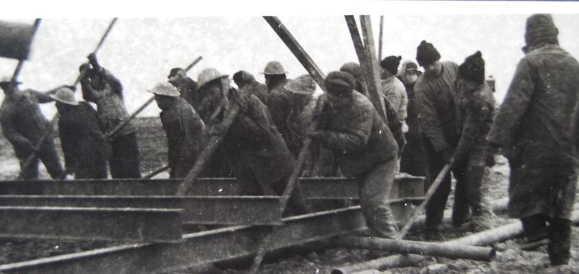 六十年代冬天的机台施工