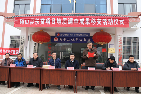 移交活动中,龚建勇处长简要介绍了两个地质扶贫项目概况。他指出项目的实施不仅是打好脱贫攻坚战的重要举措,也是地质成果转化应用的重要体现,更是落实中央、省委精准扶贫战略,对接地方政府,满足地方需求,探索地质+扶贫新模式的重要尝试。