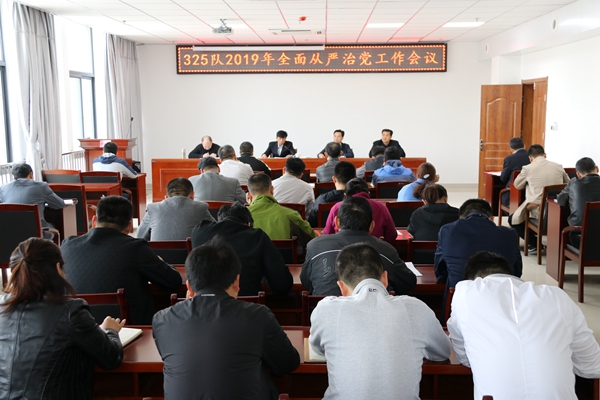 4月19日上午,325队2019年全面从严治党工作会议在地质科研中心三楼会议室召开。队领导、中层干部、党支部书记共计50人参加,会议由纪委书记郑明涛主持。
