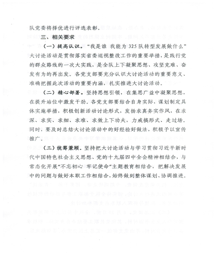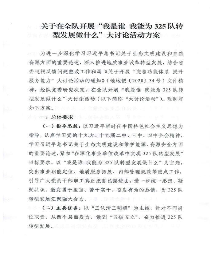 关于在全队开展“我是谁 我能为325队转型发展做什么”大讨论活动方案