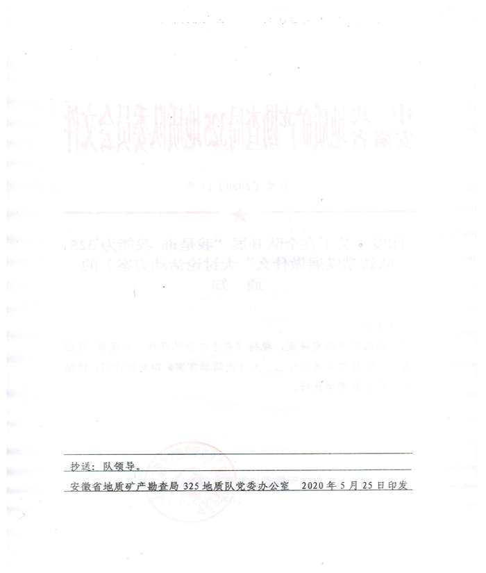 发布时间:2020.05.26 新闻来源:安徽省地质矿产勘查局325地质队 浏览次数: