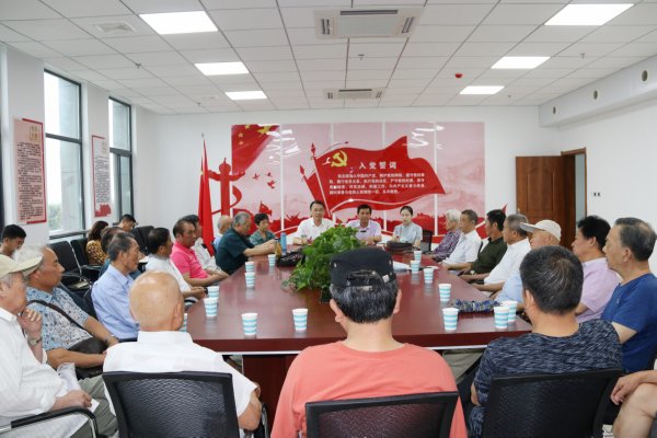 6月23日,325地质队党委书记、队长张育文与25名离退休党员代表座谈,共同庆祝建党99周年。