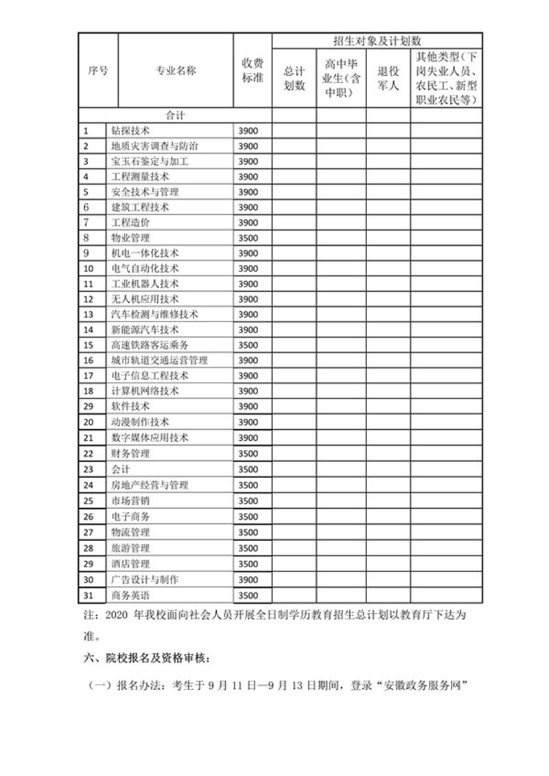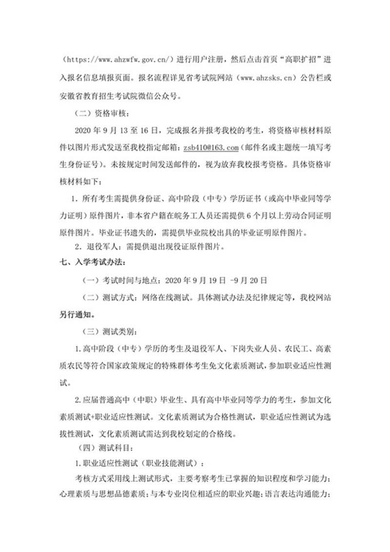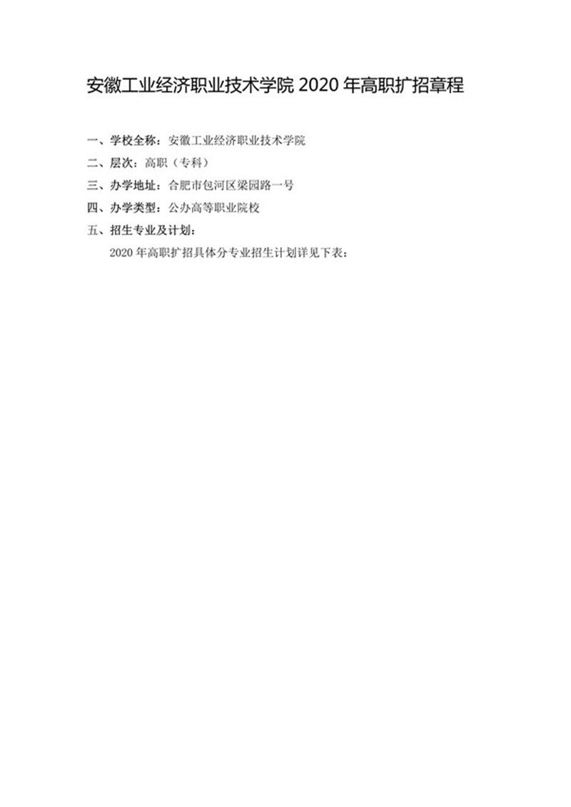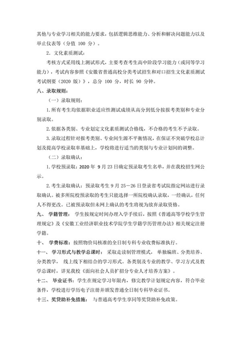 安徽工业经济职业技术学院2020年高职扩招章程