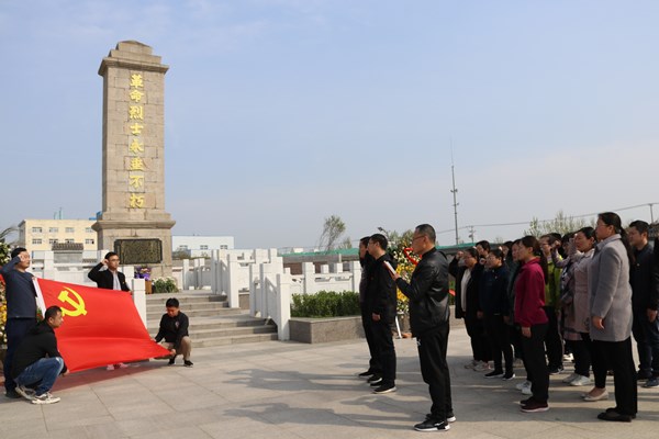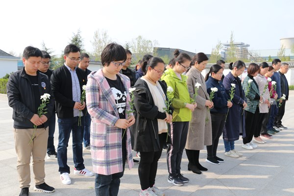 鲜花献英烈,哀思祭忠魂。为深切缅怀在革命战斗中英勇献身的革命先烈,推动党史学习教育走心走实,4月6日,政工党支部联合地调党支部组织党员到小朱庄战斗烈士陵园,开展“学党史 缅先烈”主题党日活动。
